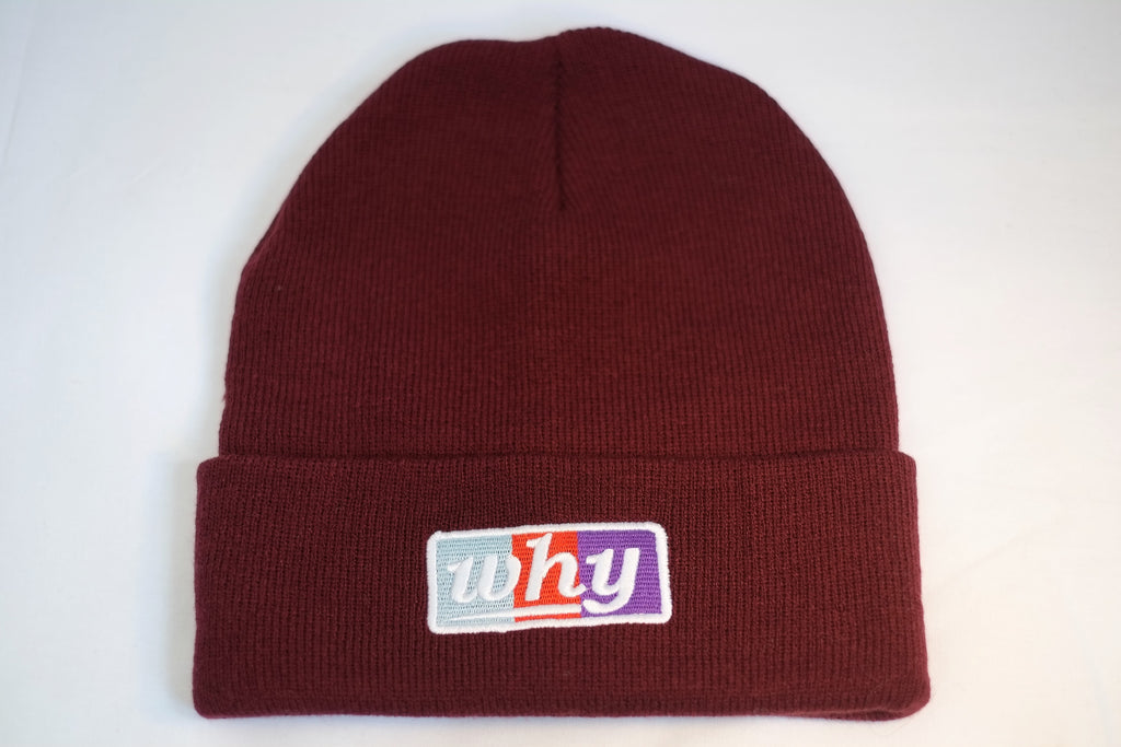 Die dunkelrote WHY WINE Beanie ist so rot, dass sie schon fast lila ist. Und so cool, dass du sie auch zwei mal umkrempeln und im Frühling tragen kannst.